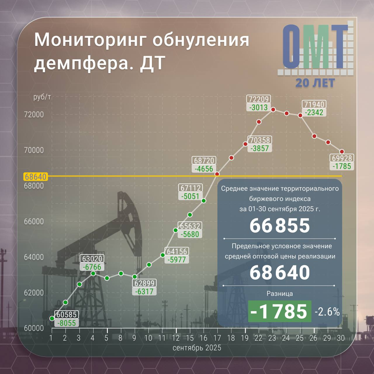 ДТ: демпфер сохраняется, так как цены ниже уровня выплат на 2,6% (-1785 руб./т). Однако уже скоро начинается торговля зимним дизтопливом, которое дороже летнего, и это станет фактором ближайших месяцев.