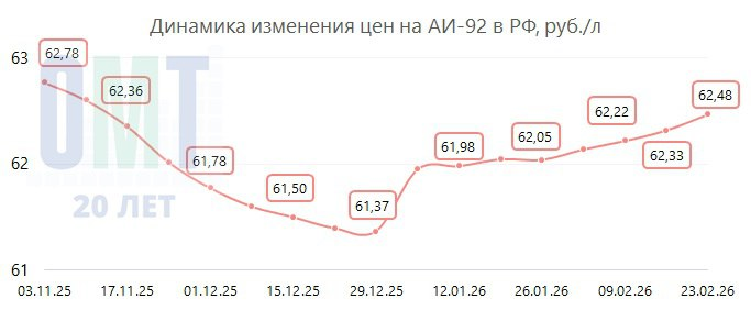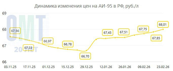 В период с 16.02.2026 по 23.02.2026 на АЗС по всей России произошли следующие изменения: